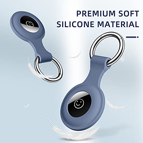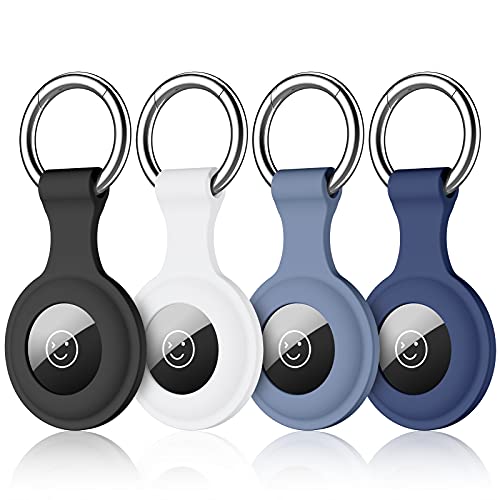 Dirrelo 4 Pezzi Custodia Airtag con Portachiavi Airtag Compatibile con Airtag Apple Custodia, Silicone Anti-Smarrimento, Anti-Graffio Custodia Protettiva per Airtag Apple, Nero+Bianco+Blu+BluGrigio