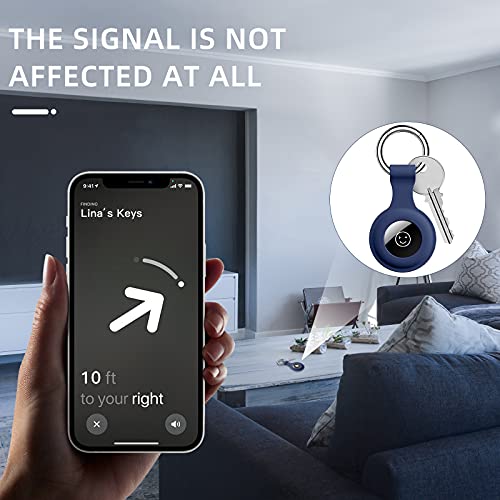 【Protezione contro le cadute】 La Airtag Custodia con Air Tag Portachiavi con tagli precisi può avvolgere perfettamente il tuo AirTag e il dispositivo non cadrà durante l'uso, la custodia in silicone flessibile può assorbire efficacemente gli urti in caso di caduta, proteggere il tuo AirTag da urti, sporco e graffi