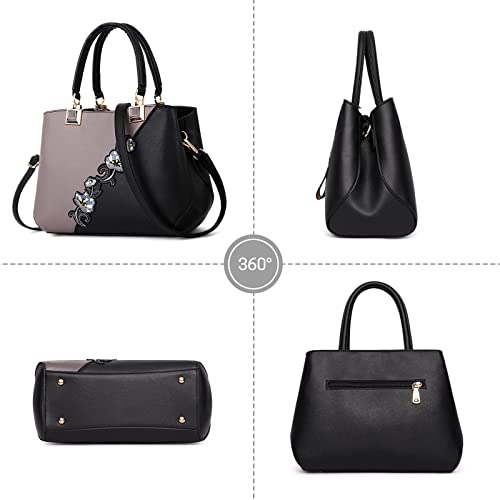DIRRONA Moda Borsa Donna Borsa a Mano Eleganti Fiori da Ricamo Borsa a Tracolla Casual Viaggio Borsa Messenger PU Pelle Tote Borse Shopper Business Tote Borse Donna Con Ornamenti Pom Pom Grigio B