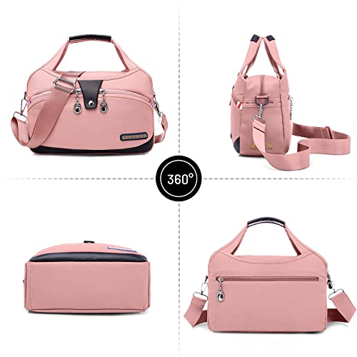 DIRRONA Borsa a Tracolla da Donna Moda Borsa Viaggio Casuale Messaggero Borsa Multitasche Borsa Lavoro All'aperto Impermeabile Nylon Borse a Tracolla Rosa