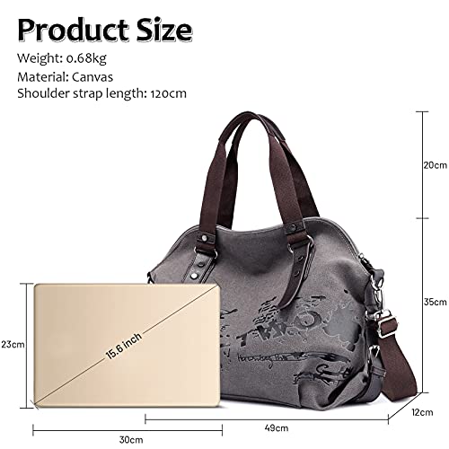 DIRRONA Casuale Donna Borsa in tela Donna Borse a Spalla in Tela Borsa a Tracolla Grande Sacchetto da in Tela Borsa Tote Donna Viaggio Vacanza Borsa da Spiaggia Grigio A