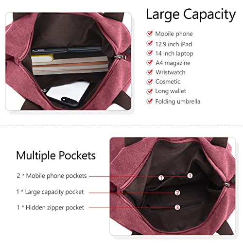 DIRRONA Donna Borse a Spalla in Tela Borse Mano Casuale Borsa a Tracolla Tela Borsa Multifunzione Per Viaggio Scuola Shopping Borsa da Spiaggia Rosso