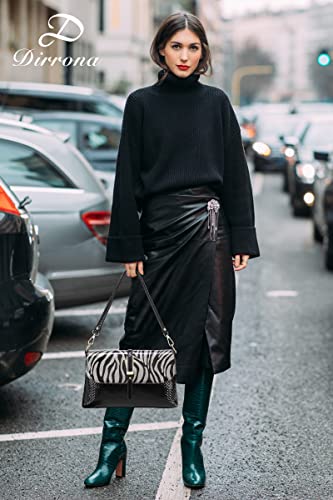 DIRRONA Elegante Borsa da Donna Classico Medio Donna Borse Mano Borsa Tracolla Casuale Viaggio Messaggero Borsa Pelle PU Impermeabile Borsa Leopardo Two Shoulder Straps D'argento