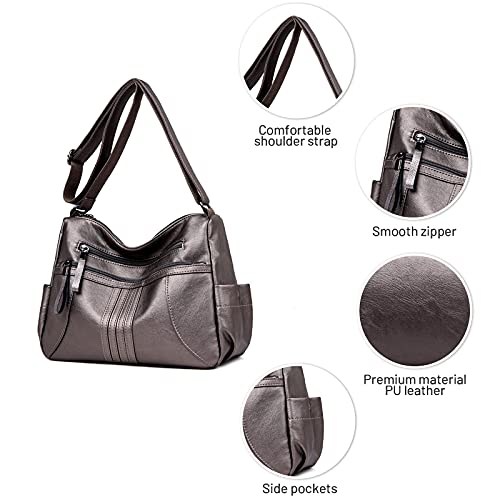 DIRRONA Elegante Donna Borsa a Tracolla Crossbody Bag Borsetta Leggero Borsa Tracolla Alta Capacità Donna Casuale Borse a Tracolla Multi Tasca Argento
