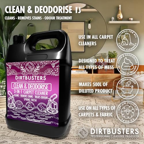 Dirtbusters Shampoo e soluzione detergente concentrati 3 in 1 Clean & Deodorise nelle fragranze Freschezza primaverile e Freschezza di bosco