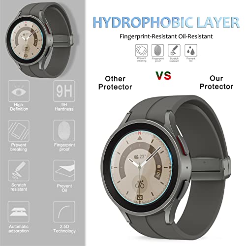 【Design Speciale】Proteggi schermo appositamente progettato per Samsung Galaxy Watch 5 Pro 45mm. Il vetro temperato antigraffio può proteggere efficacemente lo schermo dell'orologio da abrasioni o altri graffi causati da oggetti duri.