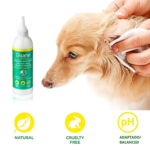 DISANE Detergente per Orecchie per Cane Naturale | Previene l'infezione all'orecchio e rimuove accumuli di sporcizia e cerume | Formula sotto Controllo Veterinario | Solutione Pulizia Auricolare