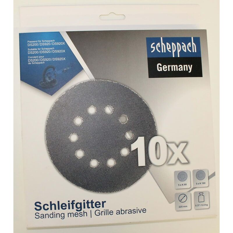 Dischi abrasivi per levigatrici da muro Scheppach ds200, ds920 e ds920x. Pacco da 10 pezzi, 5x K80 e 5x K180 Dati tecnici Diametro: 225 mm Grana: 5x K80 / 5x K100 Adatto per: Levigatrici da muro Scheppach ds200, ds920 e ds920x
