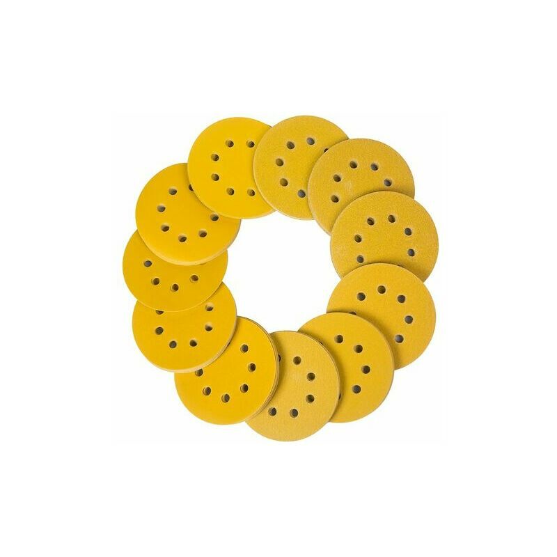 Tipi completi: contiene 110 pezzi di mole con diverse grane: 60/80/100/120/150/180/240/320/400/600/800, 10 pezzi di ogni tipo. Questi dischi a 8 fori da 125 mm hanno un'impugnatura posteriore delle smerigliatrici, l'ossido di alluminio sulla parte anteriore è ideale per una finitura liscia, i dischi abrasivi soddisferanno quasi tutte le esigenze di lucidatura. ALTA QUALITÀ: questo disco abrasivo viene fornito con una base in carta spessa di classe D, il disco abrasivo da 125 mm è realizzato in carta kraft di alta qualità con un buon strato di ossido di alluminio. Le mole in carta abrasiva in ossido di alluminio di alta qualità con speciale trattamento termico hanno un'eccellente lucidabilità, nitidezza e resistenza all'usura. Mole durevoli e antistatiche, buona scelta per levigare e lucidare. Facile da usare: questa mola da 125 mm ha un sistema di legante in resina ad alta resistenza che ne aumenta la durata, il resistente velcro inverso rende il cambio la mola più facile e comoda