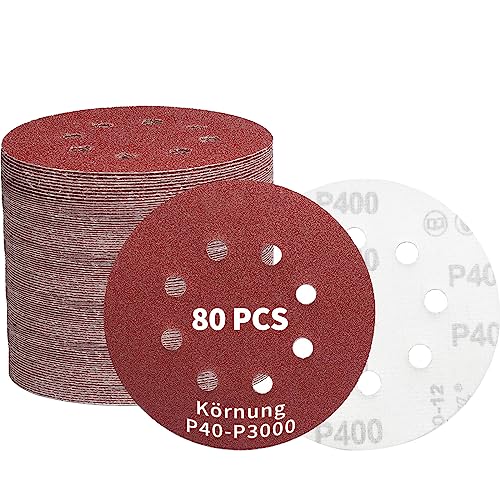 KZKR Set di 85 dischi abrasivi in velcro | con 17 tipi di grana (P40-P3000) | Ø 125 mm Velcro fogli abrasivi per levigatrice orbitale a 8 fori