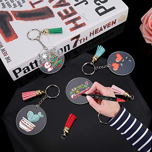 Portachiavi fai-da-te che fanno kit - Compresi 30 pezzi di dischi trasparenti acrilici rotondi da 2 pollici, 30 pezzi di ciondoli con nappe, 30 pezzi di portachiavi divisi con catena di estensione e 30 pezzi di anelli di salto. Ottimo per portachiavi monogramma fai-da-te e etichette regalo.