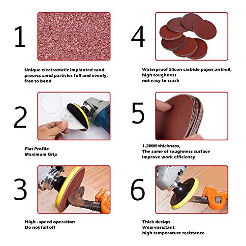 [Caratteristiche]: tamponi di dischi di levigatura in alluminio di alta qualità con trattamento termico speciale, eccellente lucidatura, affilatura e resistente all'usura. Durevole e antistatico, buona scelta per levigatura e lucidatura.