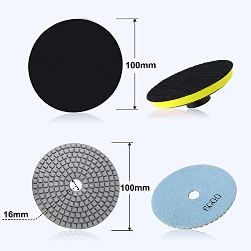 Dischi di lucidatura Dimond da 4 pollici, 100 mm, M14, disco adesivo + 2 cuscinetti da 50 / 100 / 200 / 400 / 800 / 1000 / 1500 / 3000 / 6000