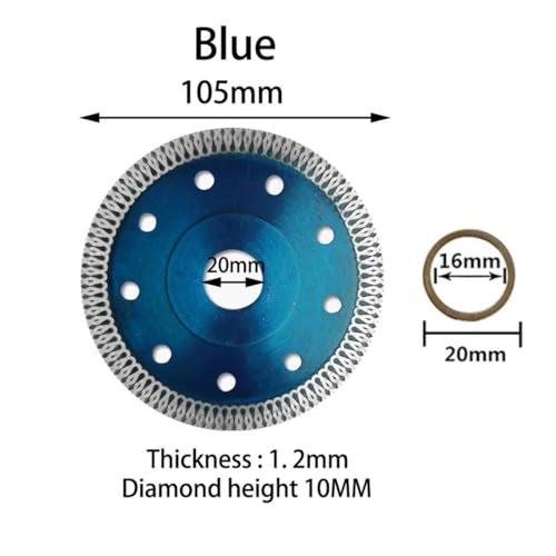 Dimensioni applicabili: diametro esterno: 125 mm (4,9 pollici). Spessore: 1,2 mm. Adatto alla maggior parte delle seghe per piastrelle e delle smerigliatrici angolari portatili.