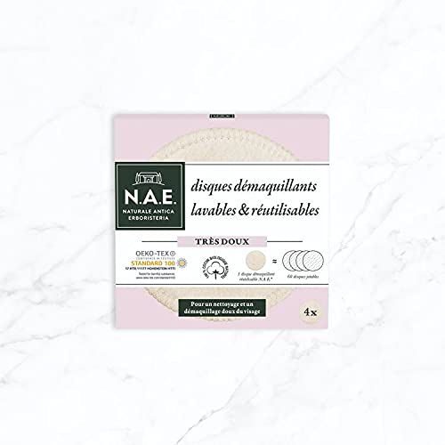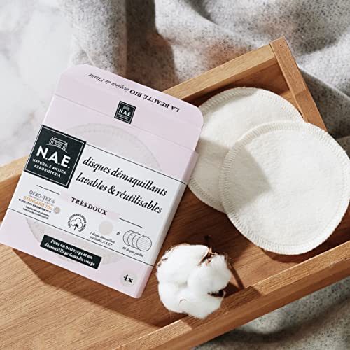 N.A.E. - Dischi struccanti lavabili per il viso - Cotoni riutilizzabili - Per una pulizia delicata del viso - Oeko-tex - 100% cotone biologico naturale - Confezione riciclabile - 4 dischi