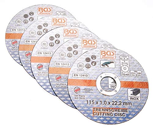 BGS 3935 | Dischi da taglio per acciaio inox | 5 pezzi | Ø 115 x 1,0 x 22,2 mm | extra sottile | Dischi flessibili