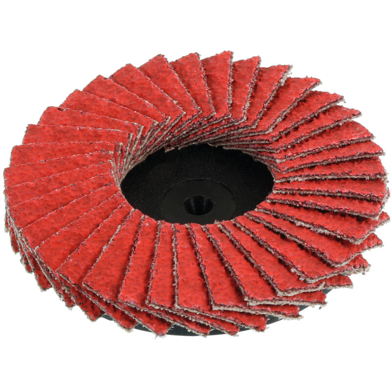 DescrizioneEsecuzione:Il sistema di cambio rapido con filettatura esterna in plastica (Roloc™, Combidisc® CDR) consente di sostituire l'utensile abrasivo in sicurezza “con una rotazione” della mano in brevissimo tempo.I mini dischi abrasivi con lamelle di tela a ventaglio hanno una durata maggiore, una capacità di abrasione più flessibile e una micrografia di rettifica più uniforme (valore di rugosità) fino al limite di usura rispetto ai dischi abrasivi tradizionali.Capacità di asportazione molto elevata grazie alla grana ceramica autoaffilante (CER).Uso:Per la smerigliatura di piccole superfici. Riduzione dei costi dei processi di lavoro a più fasi in seguito ai tempi di sostituzione ridotti.Nota:Roloc™ Bristle-Disc vedi n. art. 573510 e seguenti.Dati tecnici Sigla materiale abrasivo Ceramica Grana 40 ⌀ disco 50,8 mm Numero max. giri 19.100 min-¹ Tipo di prodotto Disco abrasivo lamellare Codice articolo 554040 40 EAN / GTIN 4062406573775