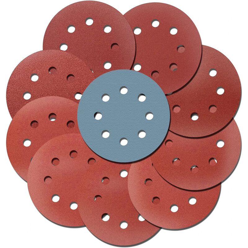Disco abrasivo orbitale Ø125 mm - Le ruote hanno un diametro di 125 mm e si adattano a qualsiasi levigatrice orbitale casuale. 8 fori sono progettati per un'aspirazione efficiente della polvere e forniscono un perfetto effetto di pulizia e lucidatura. Usi versatili: dischi abrasivi utilizzati con utensili elettrici, utensili pneumatici, levigatrici.Ideale per la lavorazione del legno, la rimozione ruggine, lucidatura di metallo, plastica, pelle, gomma e vetro. Con 10 tipi di grana - P80/180/240/320/400/800/1000/1500/2000/ 3000 (10 dischi per grana), carta vetrata a grana da grossa a fine, può soddisfare tutte le tue esigenze. Realizzato con materiali resistenti all'usura - Abrasivo all'ossido di alluminio di alta qualità con speciale trattamento termico, la carta vetrata è un'eccellente lucidatura, affilata e resistente all'usura, durevole e antistatica. Buona scelta per la levigatura e la lucidatura. Forte adesione a strappo - Il valore della forza di trazione della flanella è ≥1,47