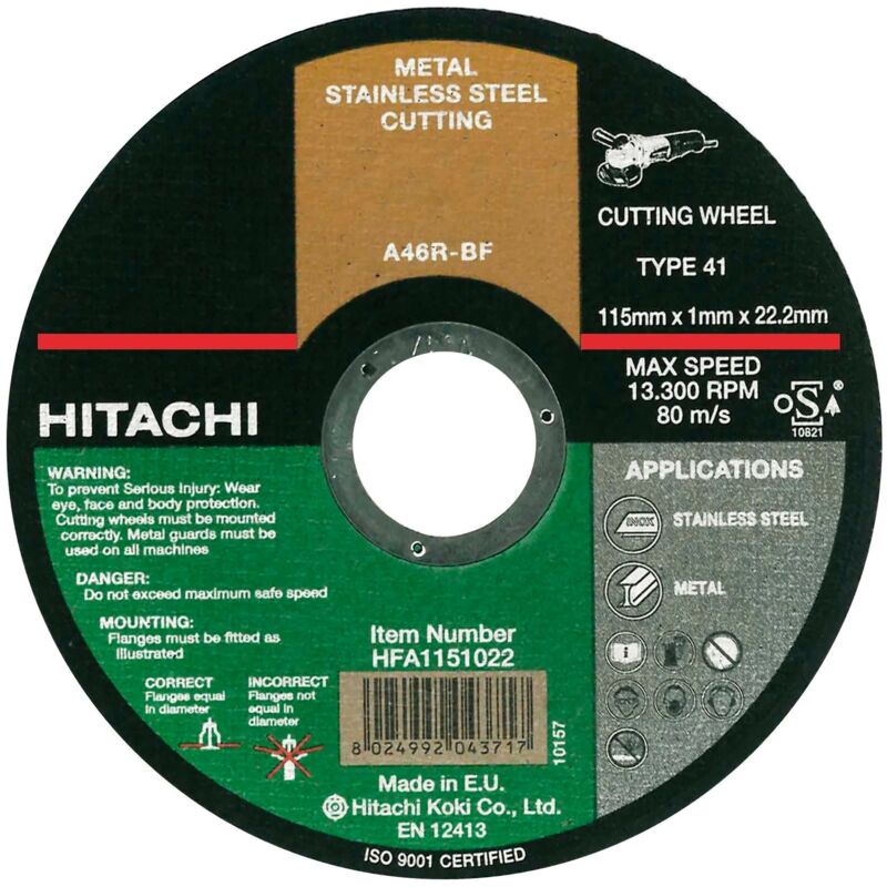 Hikoki - disco abrasivo per pietra ø115 con spessore da 3.2mm SKU HIT1153222M Marchio HIKOKI Codice fornitore HFA115322M Misure ø115*3.2 MM PIETRA