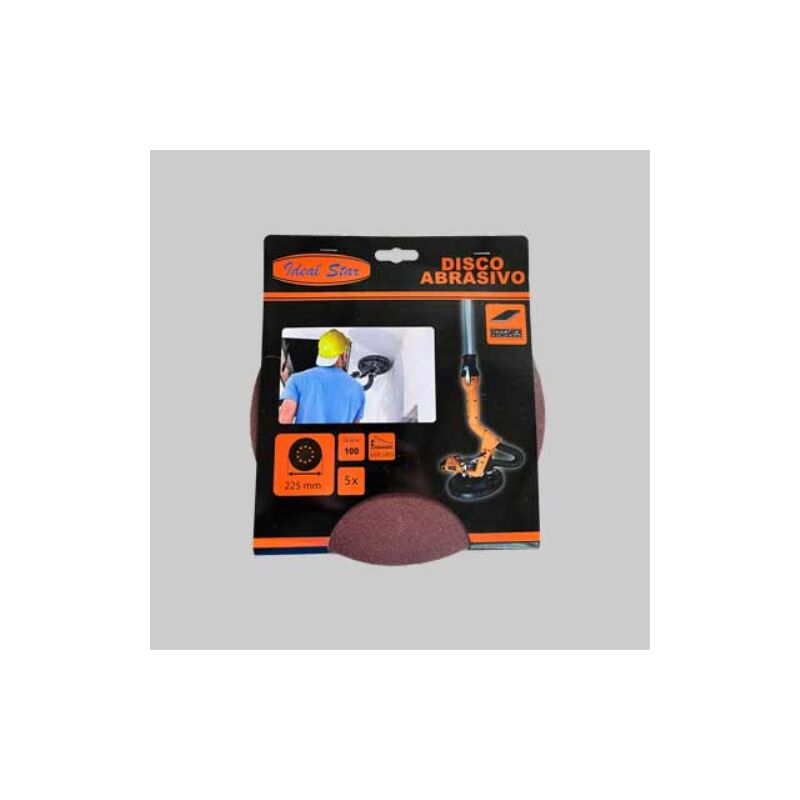 Blister 5 dischi 10 fori compatibili per la levigatrice a parete IDEAL STAR (Cod. 0042002). Per levigare a secco. Disco abrasivo velcrato per levigatrice ideal star ø 225 grana 120 - conf. 5 pezzi IDEAL STAR Elettroutensili ideal star