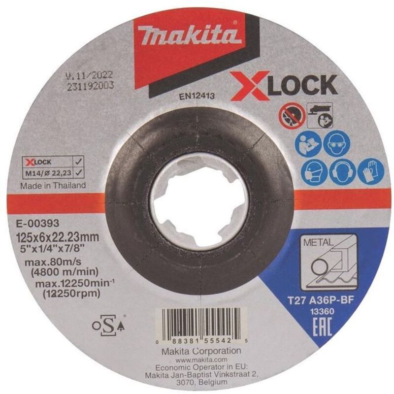 Makita E-00393. Tipo: Disco di macinatura, Adatto per materiali: Metallo, Compatibilità marca: Makita. Quantità per pacco: 1 pz