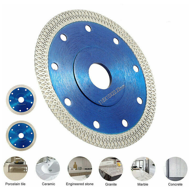 acciaio ad alto tenore di carbonio Diametro: 115 mm/4,5 pollici Diametro esterno: 115MM Diametro interno: 20MM Alesaggio: 22,23 mm Spessore lama: 1,2 mm RPM: 14.500 (giri al minuto) Disponibile per il taglio: porcellana, piastrelle di ceramica, granito, arenaria quarzo ect. Colore blu Quantità consegnata: 2 pezzi