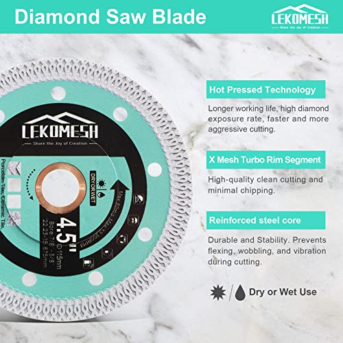 【SPECIAL DESIGN】Il cerchio turbo in mesh con segmento ibrido diamantato offre un taglio pulito e veloce di alta qualità e un taglio minimo. Il nucleo in acciaio rinforzato impedisce flessione, oscillazioni e vibrazioni durante il taglio.