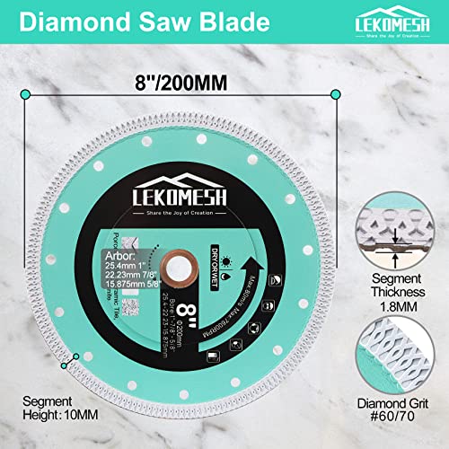 Disco Diamantato 200MM Lama per Sega - LEKOMESH Super Sottile Veloce,Pulito Taglio Porcellana Ceramica Piastrella Marmo Granito Pietra artificiale,X Mesh