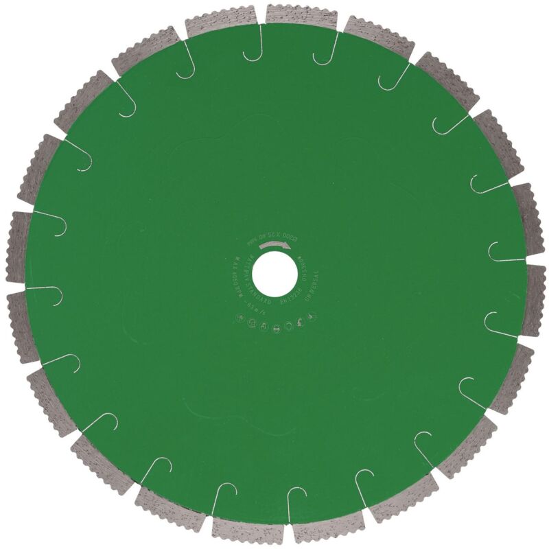 Disco diamantato segmentato per taglierina da cantiere Battipav Multi Cut Standard UNS300W. Per laterizi, ghiaino lavato, cemento, mattoni. Utilizzo ad acqua. Dimensioni disco: 300 mm Foro disco: 25,40 mm Altezza segmento: 10 mm Materiali: laterizi, ghiaino lavato, cemento, mattoni.