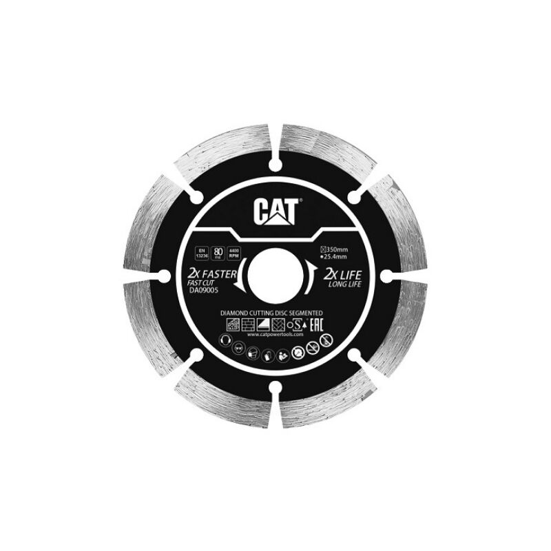 Il disco segmentato CAT Industrial Diamond con segmento di altezza 10mm, offre un maggiore attrito per una durata 2 volte più veloce e più lunga. Completamente indurito e trattato termicamente. Le caratteristiche tecniche sono: Diamante industriale con altezza di 10mm Diametro esterno: 350 mm Foro interno: 25.4/20 mm Spessore disco: 3.2 mm Velocità: 80 m/s Giri: 13 300 min Applicazione: piastrelle, calcestruzzo, laterizio, intonaco, pavimentazione L'anima in acciaio completamente temprato e trattato termicamente consente un rapido e un campo di applicazione ampio. Utilizzabile su superfici anche delicate come le piastrelle o il marmo. Può essere utilizzato anche con materiali ediali come muratura e pietra in genere, ma anche calcestruzzo. Il disco è utilizzabile con smerigliatrici CAT, Milwaukee, Bosch e DeWalt, sia a batteria che a filo.