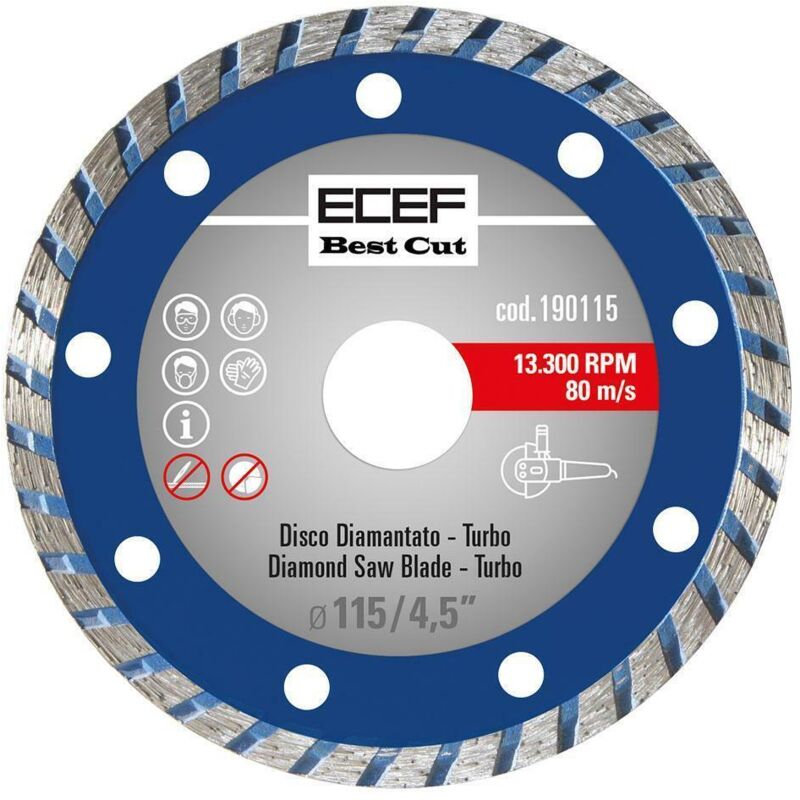 Tipo universale. Turbo, corona continua. Idoneo per muro, cemento, piastrelle, pietra, marmo per taglio con e senza acqua. Rotazioni 80-13300 g./min. Foro mm 22,23.