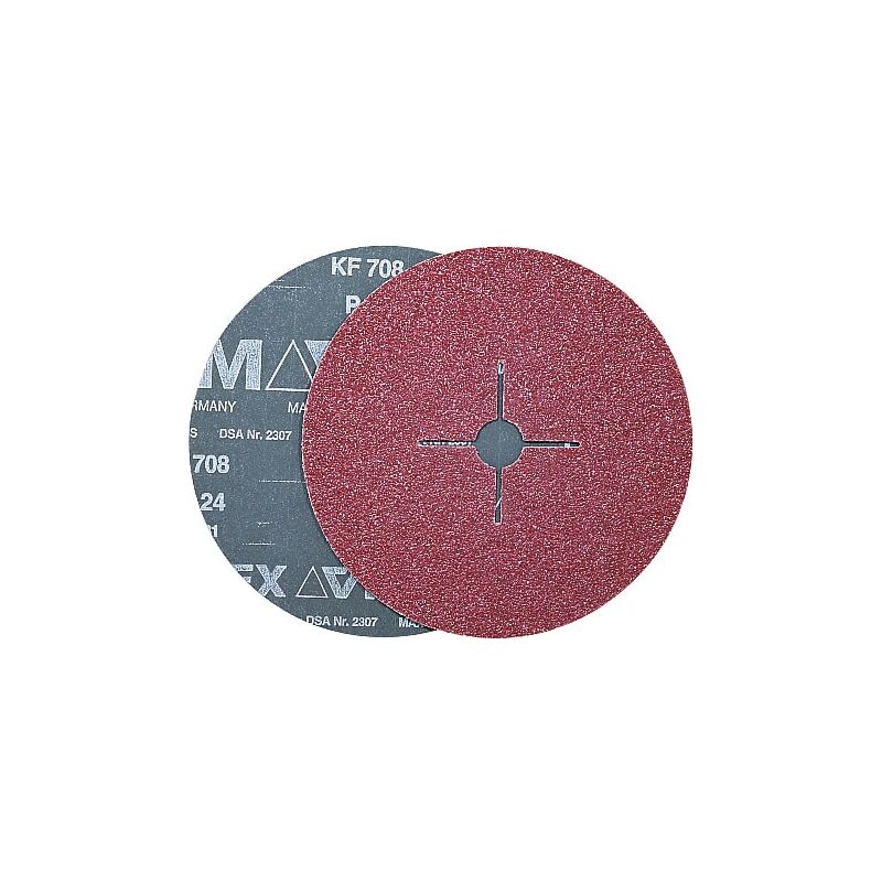 Fibra vulcanizzata antistrappo, ma molto elastica. Foro 22,23 mm e impronta a croce. Disco fibrato universale VSM KF 708 di grande qualità per la smerigliatura di metalli, plastica, legno e simili. Tipo di abrasivo: corindone seminobile (A). Uso: Su smerigliatrici angolari con velocità periferica di max. 80 m/s con platorelli n. art. 566650/566670. Per la rettifica di superfici piane o curve con elevata flessibilità. Dati tecnici Acciaio < 67 HRC m/s limitatamente adatto Acciaio < 1400 N/mm² m/s idoneo Acciaio < 900 N/mm² m/s idoneo INOX m/s limitatamente adatto Acciaio < 55 HRC m/s idoneo Alluminio, CFRP m/s idoneo Legno m/s idoneo Ti m/s limitatamente adatto Al/Mg m/s limitatamente adatto a secco idoneo GG(G) m/s limitatamente adatto CuZn m/s idoneo Acciaio < 60 HRC m/s idoneo ⌀ Foro mm 22.23 Sigla materiale abrasivo A Materiale abrasivo Corindone seminobile (A). Adattatore Sistema di cambio rapido Roloc™ Sostrato del materiale abrasivo Fibra vulcanizzata Ottimizzato per il