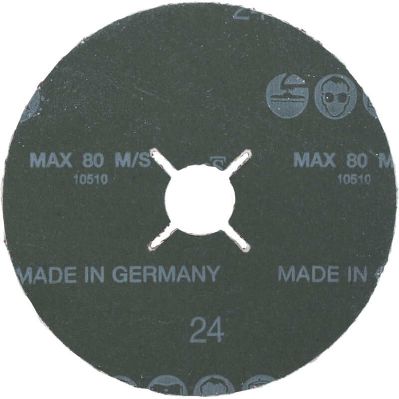 Fibra vulcanizzata antistrappo, ma molto elastica. Foro 22,23 mm e impronta a croce. VSM XF 733 con potenza abrasiva e durata massime su metalli non ferrosi come l'alluminio. Lo strato aggiuntivo abrasivo evita l'intasamento e le aderenze dei trucioli. Tipo di grana: grana ceramica con rivestimento abrasivo (STEARAT Plus). Uso: Su smerigliatrici angolari con velocità periferica di max. 80 m/s con platorelli n. art. 566650 / 6670. Per la rettifica di superfici piani o curve con elevata flessibilità. Dati tecnici Sigla materiale abrasivo Ceramica Velocità periferica massima m/s 80 Materiale abrasivo Grana ceramica ⌀ Foro mm 22.23 Attributo del nome del prodotto ⌀ 125 mm Percentuale di ferro, zolfo e cloro % < 0,1 CuZn m/s idoneo a secco idoneo Al/Mg m/s idoneo Tipo di prodotto Disco in fibra Grana 36 ⌀ Disco, mm 125