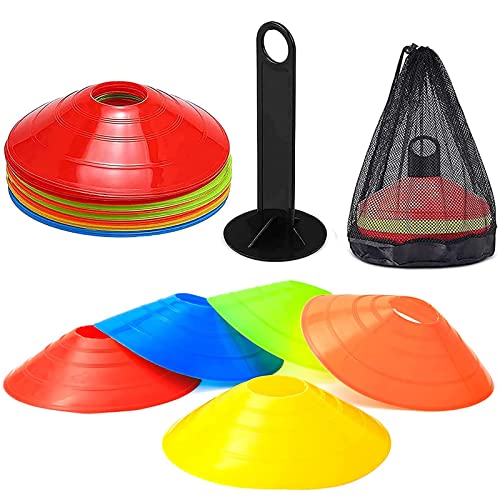 Colorato: ci sono 5 colori di coni per l'allenamento del calcio, verde, arancione, giallo, rosso, blu e verde fluorescente. È ben visibile, molto visibile e non si distrae facilmente, è un regalo ideale per gli appassionati di sport.