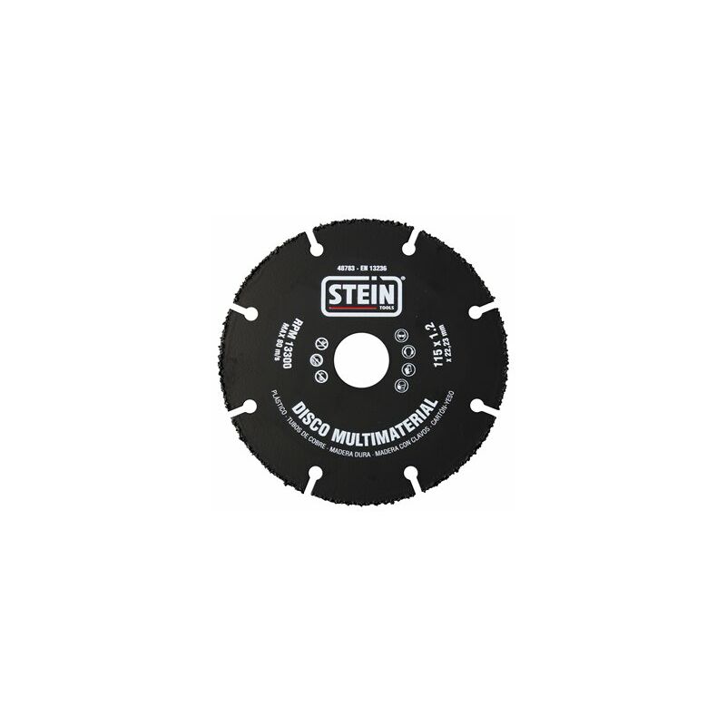 Disco da taglio multimateriale. Plastica, rame, legno, gesso. Adatto per uso a secco. Standard calibro 22 mm . Velocità di taglio: 80 m/s. Profilo dritto da 1,2 mm. Giri/min: 13300 massimo. Sottile e resistente Disco da 115 mm. Materiale: metallo duro con fusione laser. Normativa EN 13236.