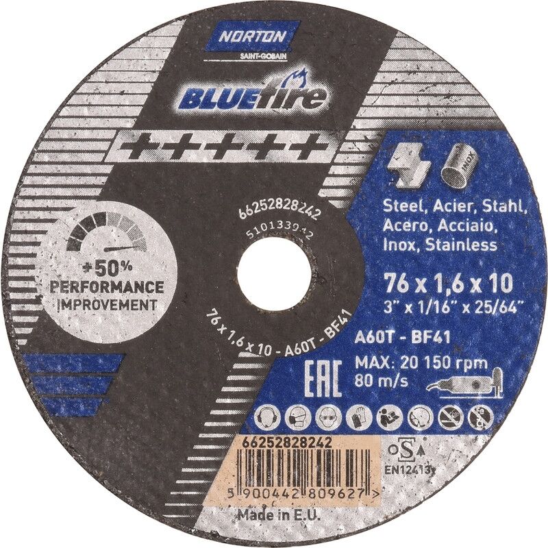 Disco tron onner Norton Blue Fire acciaio/inossidabile 76 10 x 1,6mm