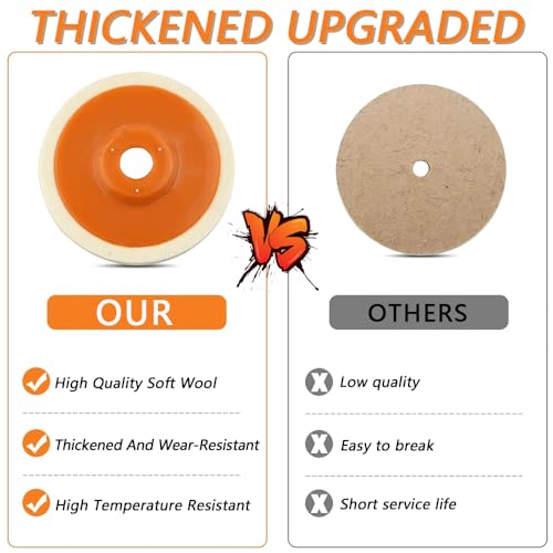 【Sicuro e Resistente】La copertura in plastica del 125 mm Disco Ruota di Lucidatura in Feltro di Lana è saldamente collegata alla mola attraverso un forte adesivo, che non è facile da staccare, dando un maggiore senso di sicurezza.