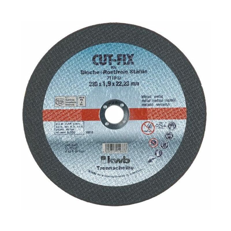 Kwb 711911. Tipo: Disco per tagliare, Adatto per materiali: Metallo, Tubo, Acciaio inossidabile, Diametro del foro: 2,2 cm