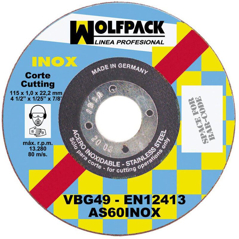 Disco in acciaio inossidabile a taglio fine Wolfpack. - Misure: > diametro disco 125 mm. > diametro anello interno 22,2 mm. > spessore disco 1,0 mm. - Struttura interna in rete di fibra di vetro per una maggiore resistenza e durata. - Anello interno più spesso per un migliore fissaggio alla macchina. - Materie prime di prima qualità per un uso professionale e duraturo. - Prodotto di massima qualità e affidabilità. - Articolo noto anche come: dischi da taglio abrasivi.