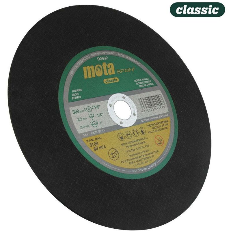 Disco da taglio in acciaio 300x3,2x25,4mm d3032 taglio per ferro. centro piatto. D3032 mota Tipo: Disco da taglio Materiale: Ossido di alluminio Modello Mota: D3032 Marca: Mota Giri max.: 5100 Applicazione: Ferro Misura: EAN: 8435223411548 Produttore: MOTA HERRAMIENTAS Peso (kg): 0,516 Riferimento: 39172