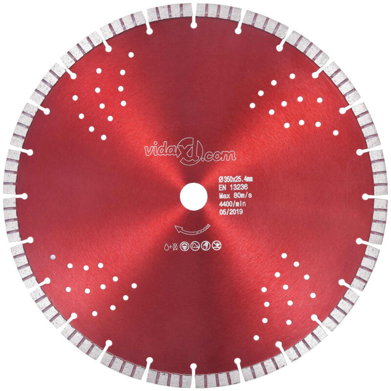 Descrizione: Caratterizzato da una lama sottile, questo disco diamantato, se montato su seghe da banco, troncatrici e smerigliatrici, è adatto per il taglio di calcestruzzo, granito, mattoni e altre applicazioni industriali e per la lavorazione manuale della porcellana o grès. I distintivi segmenti turbo conferiscono alla lama diamantata velocità di taglio più elevate mantenendo un taglio regolare. L'acciaio premium e il materiale diamantato portano a una perdita di materiale ridotta e quindi a una durata ottimale. Inoltre, il disco diamantato è prodotto da una pressa a freddo ed è adatto sia per il taglio a secco che a umido. Specificazioni: Colore: Rosso Materiale: Acciaio, lega con diamante Diametro: 350 mm Diametro del foro centrale: 25,4 mm Lunghezza del bordo: 12 mm Velocità massima: 80 m/s Velocità operativa massima: 4400 giri / min Con segmenti turbo e fori Adatto sia per taglio a secco che a umido