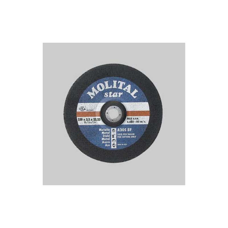 A centro depresso. Foro mm.22. Disco da taglio per ferro ø 230x3,2 mm MOLITAL Dischi