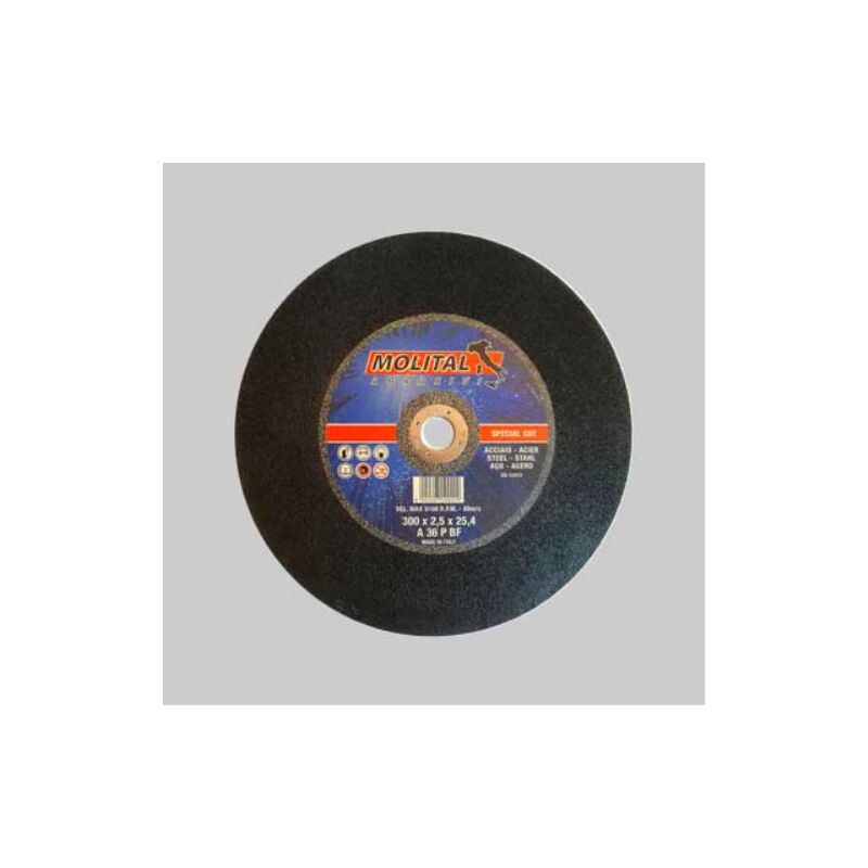 A centro piano. Foro mm.25,4. Per troncatrici. Disco da taglio per ferro per troncatrici ø 300x2,5 mm MOLITAL Dischi