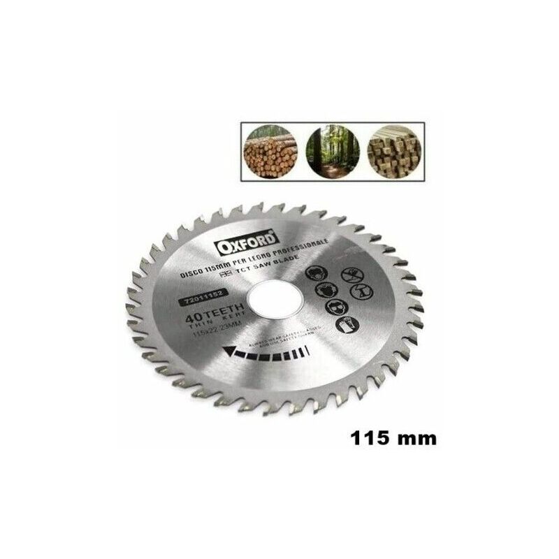 DISCO PER TAGLIO LEGNO115 mm PER SMERIGLIATRICEANGOLARE.DISCO DA TAGLIO LEGNO PER SMERIGLIATRICI ANGOLARI DA 115 mm.REALIZZATO IN ACCIAIO CON 40 DENTI AL WIDIA.DIAMETRO FORO 22,2 mmIN DOTAZIONE ANELLO PER RIDURRE IL FORO A 20 mm REGIME DI ROTAZIONE MAX12000 GIRI/min