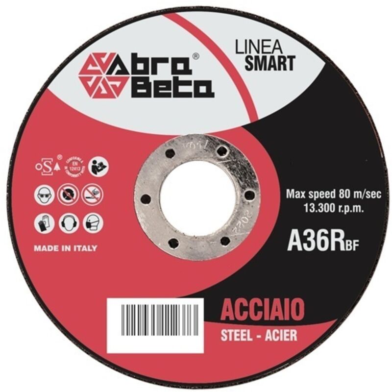 Dischi da taglio del marchio Abra Beta di spessore sottile con centro piano utilizzabili universalmente per il taglio di acciai non trattati. Precisa e concentrata asportazione di materiale e conseguente basso assorbimento di potenza dell'elettroutensile. Ridotta produzione di bave. Foro da 22,23mm....