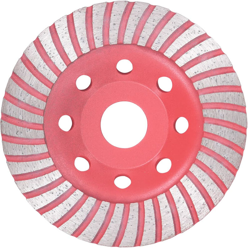 La nostra mola a tazza diamantata, con un diametro di 115 mm, caratterizzata da un design a doppia fila per smerigliatura a secco o umido, è ideale per la preparazione della superficie, l'unione dei bordi, la modellatura uniforme, la finitura della parete inclinata in calcestruzzo o altre superfici in muratura. Il design leggero e antivibrazioni riduce notevolmente l'affaticamento dell'operatore, i fori permettono all'aria di raffreddare la mola in modo veloce ed efficace. Grazie al rivestimento in polvere di diamante, la mola è extra robusta e resistente, garantendo un'alta velocità di taglio, un'elevata prestazione, e una lunga durata. Colore: Rosso Materiale: Ferro, lega con polvere di diamante Diametro lama: 115 mm Diametro del nucleo: 22,23 mm Velocità massima: 80 m/s Velocità operativa massima: 13300 giri/min Adatto sia per taglio a secco che a umido Colore: Rosso Materiale: Ferro, lega con polvere di diamante Diametro lama: 115 mm Diametro del nucleo: 22,23 mm Velocità massima