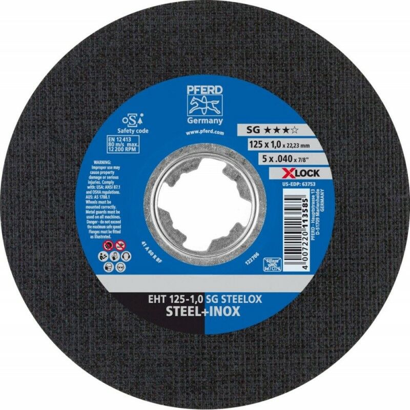 Dettagli tecnici Contenuto 25 pz. Dimensione del prodotto, larghezza 2.4 mm Dimensione, Ø 125 mm Dimensioni (Ø) 125 mm Idoneità del materiale Acciaio inox, Acciaio Tipo prodotto Disco da taglio con centro depresso Ø foro 22.23 mm Tipi di azionamento: Smerigliatrice angolare Attività di lavorazione: Creazione di interruzioni, separazione di lamiere, separazione di profili, separazione di materiale pieno DISCO DA TAGLIO EH 125-2,4 SG STEELOX/X-LOCK Disco da taglio per acciaio e acciaio inox (INOX) con elevata potenza di separazione e massima durata. Testo tradotto automaticamente Punti di forza e dettagli Utilizzabile universalmente su acciaio e acciaio inox (INOX)Rapido avanzamento del lavoro grazie all'elevata potenza di separazioneMassima convenienza grazie alla massima durata Caratteristiche Registrazione X-LOCK (22,23) Incluso nella consegna null Requisiti di sistema null