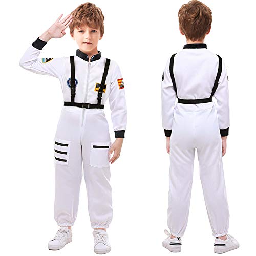 Discoball Costume da Astronauta per Bambini Costume da Astronauta per Bambini Set Costume da Gioco di Ruolo per Bambini Costumi di Halloween per Bambini Tuta Spaziale Bianca per Ragazzi e Ragazze(XL)