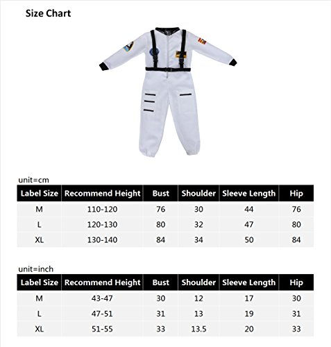 【Tessuto confortevole】 - Il costume dell'astronauta è realizzato in tessuto spandex che è liscio e flessibile, i bambini adoreranno indossarlo molto. La nostra taglia X-Large è adatta per bambini di età compresa tra 9 e 10 anni. Altezza: 130-140 cm.
