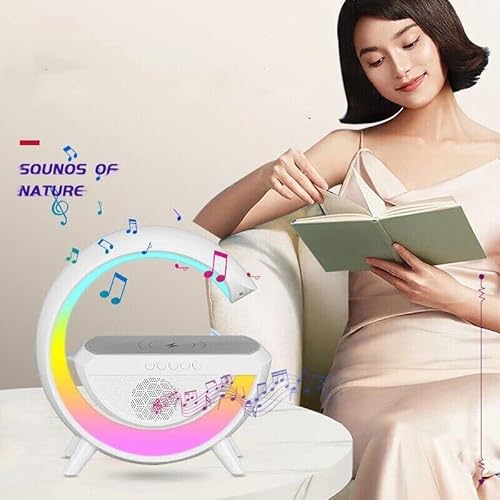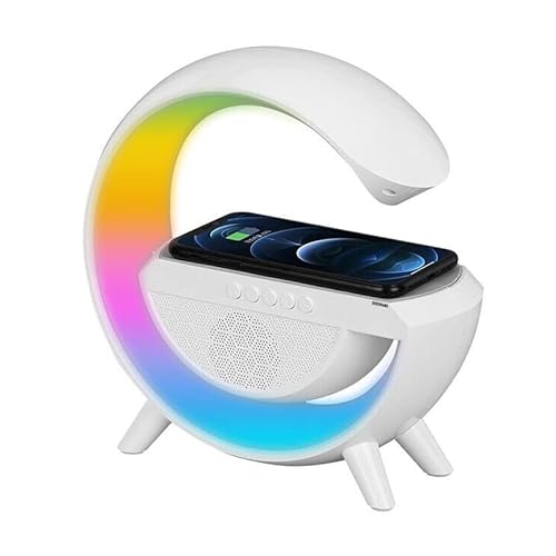 DISCORAMA LAMPADA DA COMODINO BLUETOOTH SPEAKER CON RICARICA WIRELESS, LAMPADA ALTOPARLANTE SVEGLIA CON LUCI LED, LAMPADA RICARICA SMARTPHONE CASSA 5W